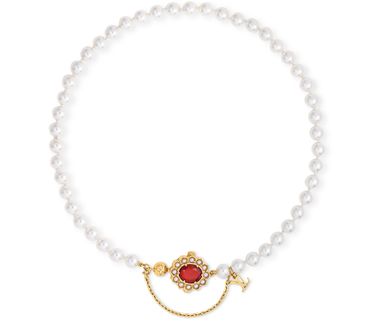 New this season, the LV Dynasty Necklace will bring a regal attitude to any ensemble, with its glowing pearls and glittering ruby-coloured stone. The central red zircon is flanked by a beautifully engraved metal bead with an aged gold-colour finish, while the golden chain and LV Initials charm lend a dandified touch to this impressive accessory.
