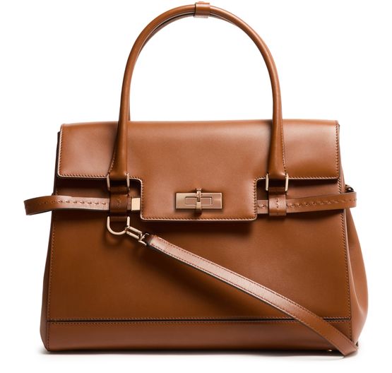 Reveal Max Mara's Margaux handbag, a masterpiece of smooth leather craftsmanship. This crossbody bag features a detachable thin strap and double handles for versatile styling. The twist lock closure secures a spacious interior with a zippered pocket, while gold lettered logos add a touch of elegance.