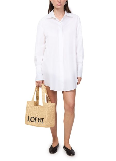 The Loewe Medium tote bag is a versatile and stylish accessory. This medium-sized bag features a spacious interior, making it perfect for everyday use. It can be worn in the hand or on the shoulder, thanks to its two handles. The bag is adorned with an embroidered logo, adding a touch of elegance to any outfit.