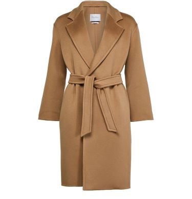 Max Mara's Melinda belted coat wraps around you with elegance, featuring a notched collar and knee-length design. Its long-sleeved silhouette offers warmth, while side pockets add practicality. This classic overcoat is perfect for any occasion, effortlessly blending style and comfort for the modern woman seeking timeless sophistication.