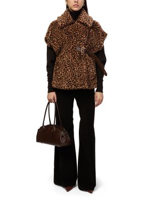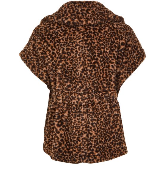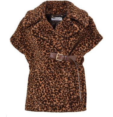 Reveal Max Mara's Newabavo Teddy cape, a stunning piece adorned with a captivating leopard print. This short-sleeved design features exquisite fur details, offering a touch of elegance and warmth. Perfect for any occasion, this cape effortlessly combines style and sophistication, making it a must-have addition to your wardrobe.
