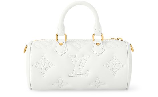 The compact, sporty Papillon BB handbag is made from soft, padded calf leather, embroidered with Louis Vuitton’s classic Monogram pattern. It features a removable gold-color chain in addition to a detachable shoulder strap and rolled leather top handles, enabling multiple ways of carrying the bag.