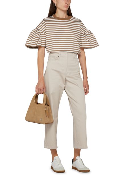 Max Mara's Peirak t-shirt is a classic wardrobe staple with a modern twist. This short-sleeved tee features a crew neck and regular length for a comfortable fit. The striped print adds a touch of sophistication, while the logo at the back label adds a subtle branded detail. Perfect for effortless everyday style.