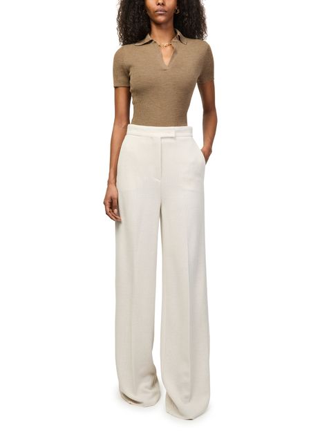 Reveal Max Mara's polo t-shirt, crafted in ribbed fabric with a flattering V-neck and short sleeves. This top offers a refined silhouette, perfect for pairing with tailored trousers or casual denim. Its modern texture and versatile design make it a standout addition to any contemporary wardrobe.