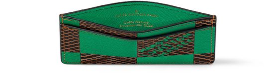 This handy Card Holder is made from Damier Pop coated canvas, Creative Director Pharrell Williams’ reinterpretation of the classic Damier print with primary color. Small enough to fit into any pocket, it can be used to hold credit cards, commuter cards, and business cards in its two outside slots and larger inside slot.