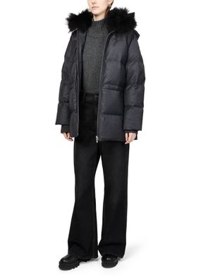 Reveal Yves Salomon's puffer jacket with a fox fur collar. This short, long-sleeved jacket features a zipper closure and side pockets, offering both style and practicality. Crafted from warm fabric with a padded texture, it’s lined for added comfort. Perfect for versatile styling, from casual to formal occasions.
