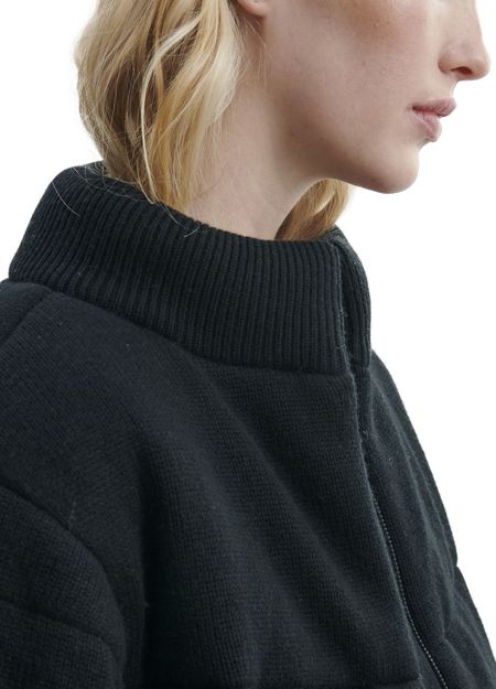 Reveal Bompard's quilted puffer jacket, crafted from warm fabric with a padded texture for a modern silhouette. The short cut and high neck offer a sleek profile, while welt pockets and a zipper closure add practical flair. Lined for comfort, this piece transitions effortlessly from day to night.