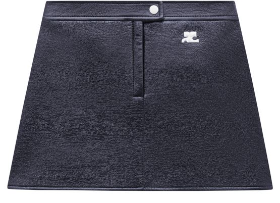 Reveal Courreges's Reedition Vinyl mini skirt. The mini length and straight silhouette are enhanced by visible stitching and a front logo, while button and concealed zipper closures ensure a sleek, comfortable fit for versatile day-to-night styling.