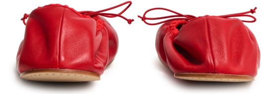 • Description : Ballet pumps, logo in gold letters, smooth leather, flat heel, round toe, logo-printed insole, pull-on design, laces and strap.