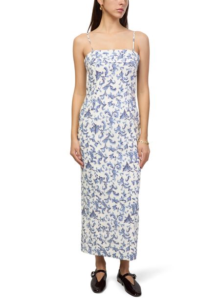 Reveal Posse's floral maxi dress, a statement piece with a rectangular neckline and sleeveless silhouette. The delicate shoulder straps and vibrant floral print create a fresh, modern look, perfect for warm-weather occasions. This design effortlessly blends elegance and comfort for a standout ensemble.
