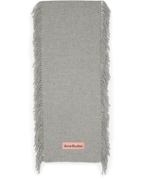 Acne's Scarf showcases an appliquéd logo that adds a touch of sophistication. With a front logo and fringed edges, it effortlessly combines style and comfort. The fringe details create a playful movement, making it a perfect accessory for any outfit, whether you're dressing up or enjoying a casual day out.