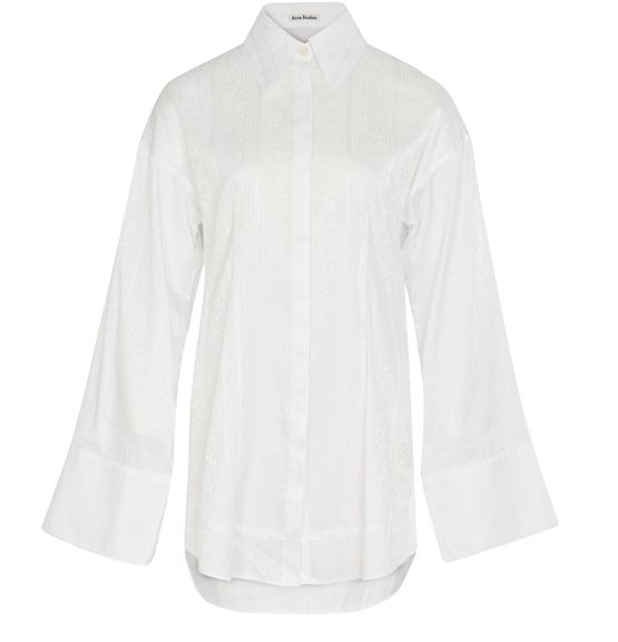 The Suzette shirt has a dynamic, oversized structure and a subtle flowery pattern to create a light, floaty, modern look designed by Acne Studios.