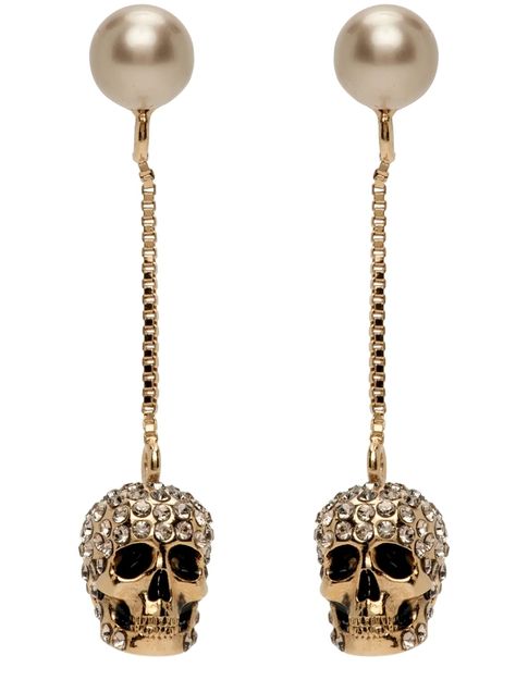Alexander McQueen creates, with this pair of Skull earrings, a hint of defiance in a feminine accessory. The pearls end with a glittering skull pendant, to add a rebel twist to a more sophisticated look.