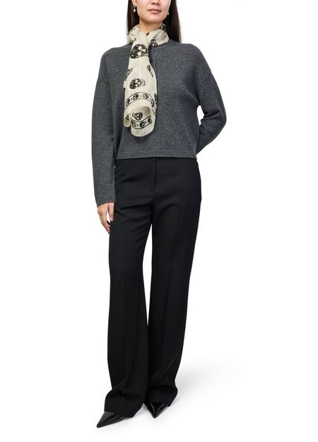 Reveal Alexander McQueen's skull scarf, crafted from fine silk with an all-over print and a striking contrasting color stripe on the edges. The signature logo print along the border adds a distinctive touch, making this accessory a bold statement for any modern wardrobe.