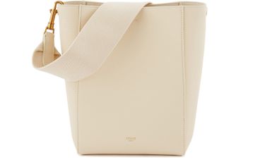 Celine presents the Small Sangle bucket bag in grained calfskin leather with an understated design. This piece is balanced and sleek.