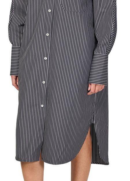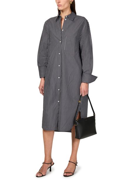 Discover Toteme Striped Kimono-Sleeve Shirtdress, a masterpiece of modern elegance. This midi dress features a striking striped print, harmonized by a buttoned-down collar and kimono sleeves for a distinctive look. Its loose fit and button fastening ensure comfort and chic style, perfect for versatile occasions.
