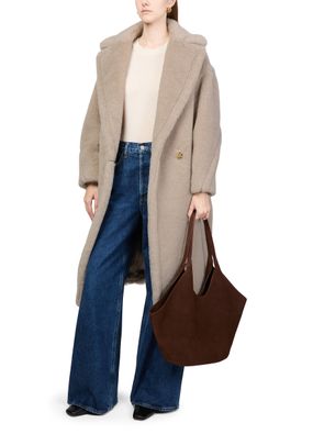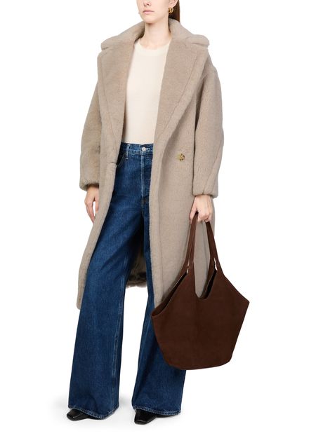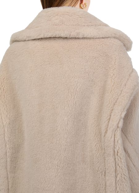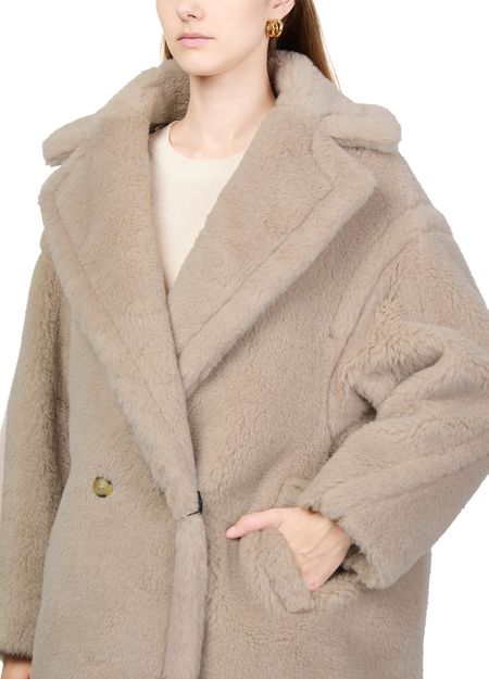Reveal Max Mara's Teddy Tedgirl coat, a masterpiece of warmth and style. This oversized, long coat features a double-breasted closure and side pockets, crafted from a luxurious warm fabric with fur details. Perfect for any occasion, it combines classic elegance with modern flair.