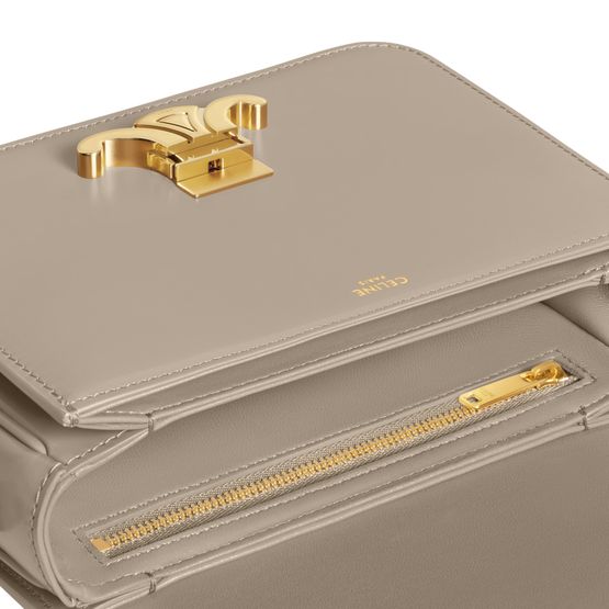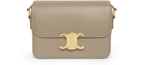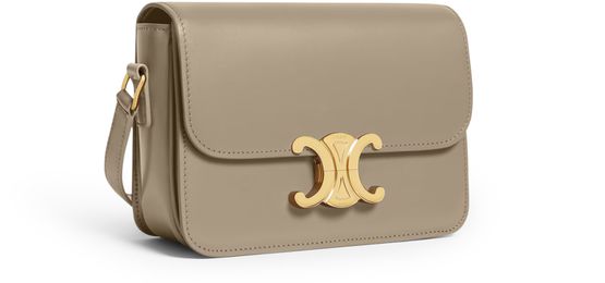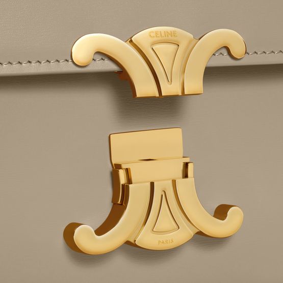 The teen Triomphe bag is designed by Celine. It combines polished calfskin and soft lines with an elegant golden buckle.