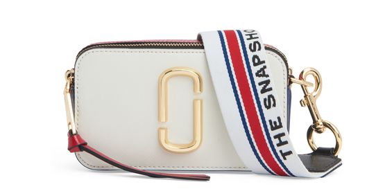 The "Snapshot" cross-body bag blends unusual, elegant materials with chic metallic details that embody Marc Jacobs' signature style.