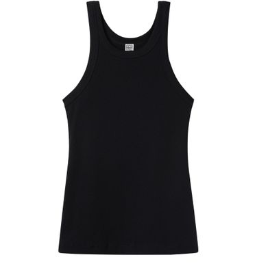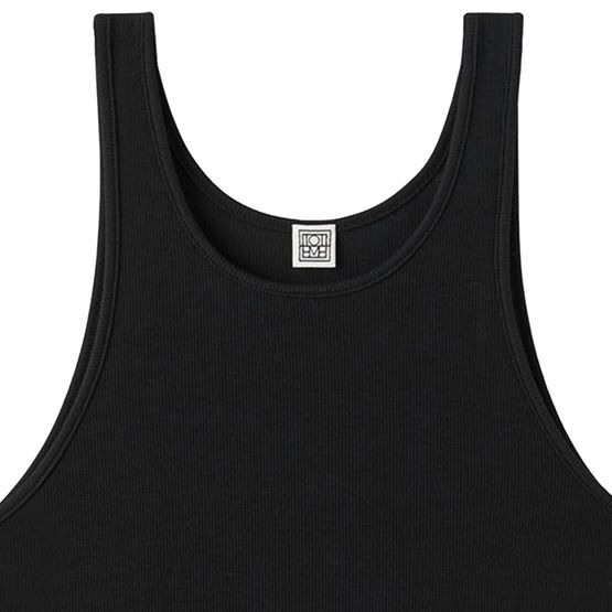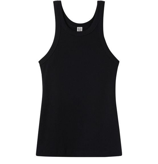 Reveal Toteme's vest top with curved sides, a refined piece featuring a classic crew neck and a relaxed silhouette. The soft cotton fabric and subtle stripe pattern offer effortless sophistication, making this top a versatile choice for both casual and elevated ensembles.