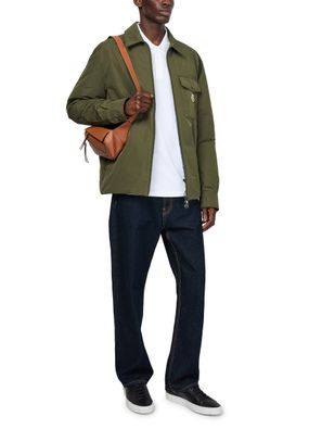 Moncler's Vigeon shirt jacket redefines casual elegance with its regular fit and short length. Featuring a zipper closure and versatile long sleeves, it boasts a padded texture and practical pockets, including a distinctive chest logo. Perfect for any occasion, this jacket easily transitions from casual outings to more polished events.