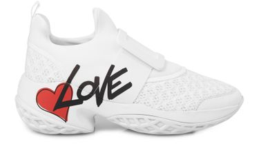 The Viv Run Lovely trainers personify Roger Vivier's talent for turning sports into trendy fashion items. The front buckle and red heart and Love message on the Choc heel add the brand's favoured femininity to the trainers. The brightly coloured upper contrasts with the thick white sole, adding a modern touch to the whole.