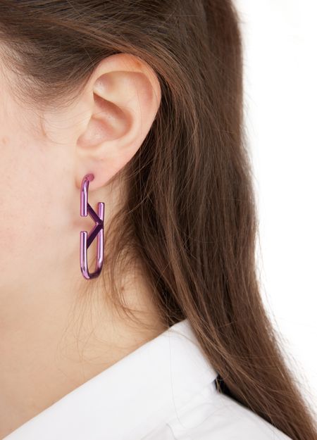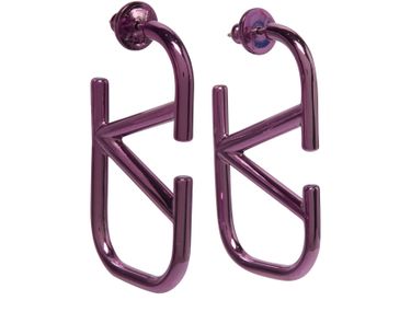 These Vlogo Signature earrings enhance the neck with their black-toned graphic quality. Valentino presents the perfect jewelry to complement the brand's looks.
