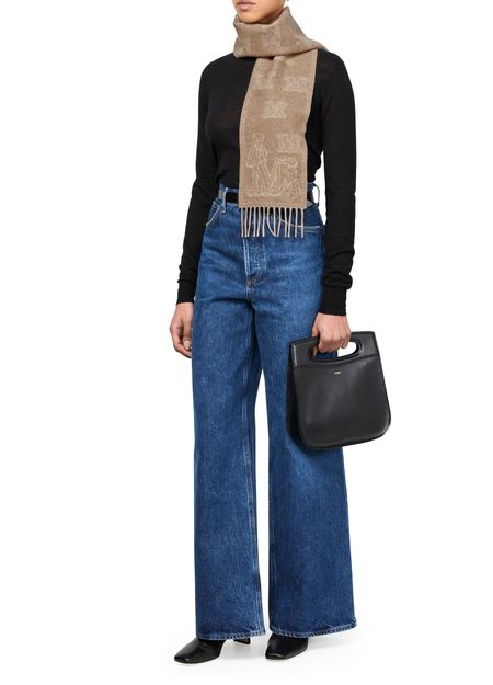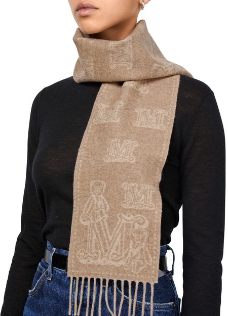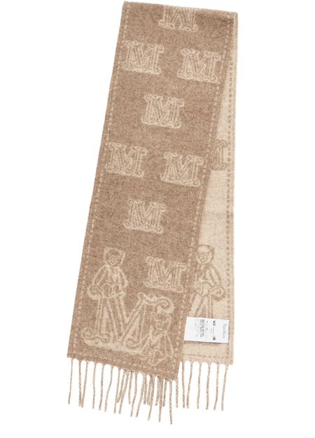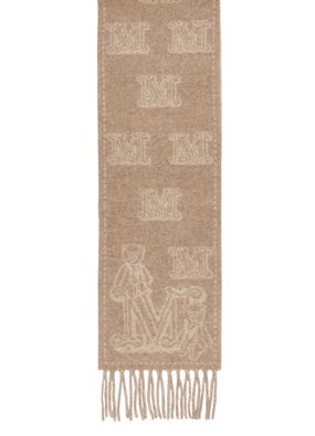 Max Mara's Wsanima logo scarf showcases exquisite fringe details and fringed edges, elevating any outfit. Its all-over logo pattern adds a touch of sophistication, while the embroidered logo provides a subtle yet striking accent. Wrap yourself in this luxurious piece for effortless style and warmth, perfect for any occasion.