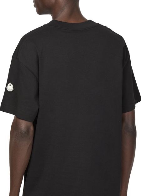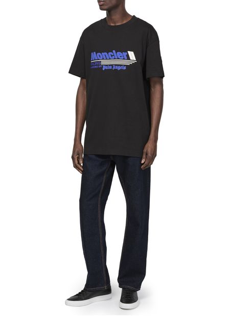 Moncler's x Palm Angels cotton jersey t-shirt showcases a stylish crew neck and short-sleeved design. Its chest logo and appliquéd details create a striking visual, complemented by visible stitching. This printed logo tee effortlessly combines luxury and streetwear, making it a must-have for those who value both comfort and style.