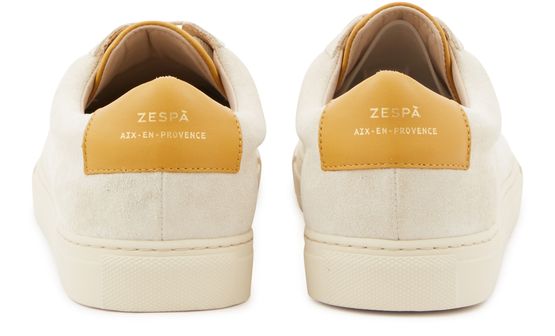 The ZSP4 trainers by Zespa. These shoes have a stylish and clean look, lifted by the colourful detailing and fine gold inscriptions.
