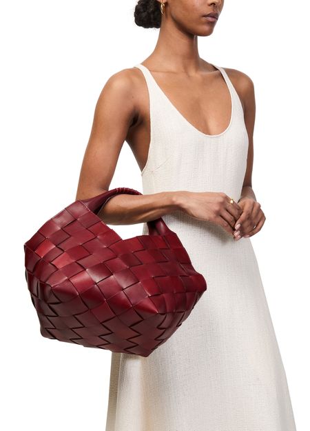 Reveal Dragon Diffusion's Botteghe shoulder bag, crafted with double handles for versatile carrying. The spacious interior compartment and secure drawstring closure blend practicality with refined design. An interior pocket adds thoughtful organization, making this piece a standout for modern sophistication.