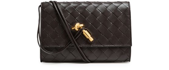 Reveal Bottega Veneta's padded crossbody bag, crafted in smooth leather with the iconic Intrecciato weaving technique. A thin strap and gold twist lock closure add refined detail, while the spacious interior and patch pockets ensure both style and practicality for modern essentials.