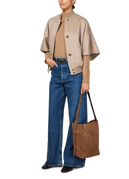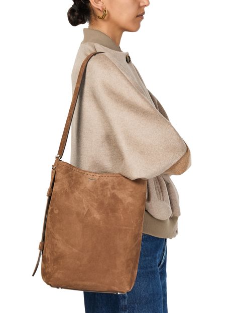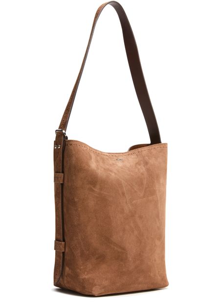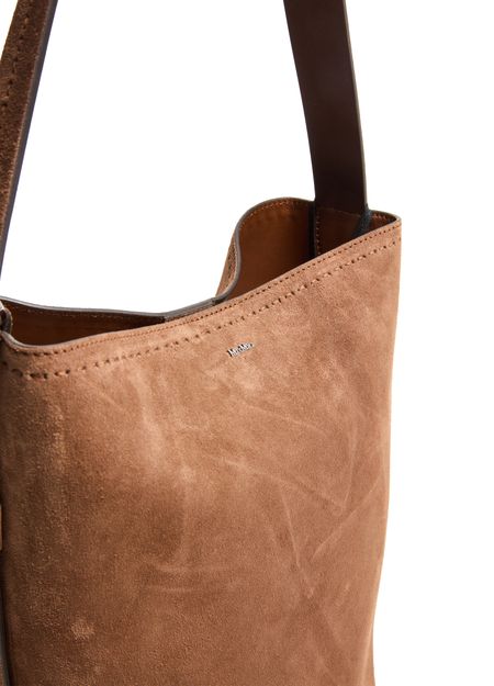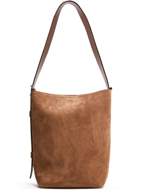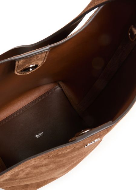 Discover Max Mara Archetipo tote, crafted from luxurious suede. This refined piece features a sleek single handle and a practical snap-button fastening. The detachable interior purse adds versatility, while visible topstitching enhances its sophisticated appeal. With a leather-lined interior, it perfectly marries style with functionality.