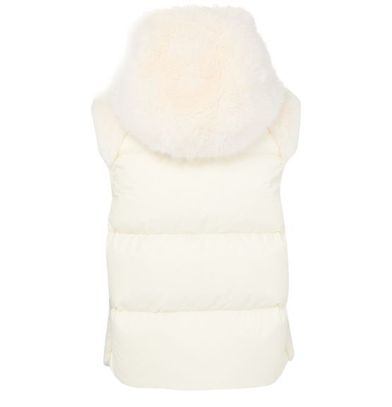 Introducing Moncler Grenoble's Arve sleeveless jacket, a modern puffer jacket crafted from warm fabric. This short, high-neck piece features a button fastening and an embroidered logo, complemented by fur detail and a padded texture. Perfect for versatile styling, it transitions effortlessly from casual to formal occasions.