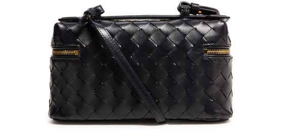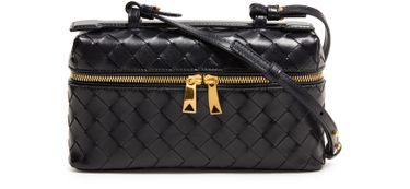 Bottega Veneta's Bang Bang vanity case combines elegance and functionality with its zipper closure and single compartment design. Crafted with visible topstitching and a gold finish, it features double handles and a detachable strap for versatile carrying options. Ideal as a toiletries bag or cosmetics pouch, it effortlessly elevates any ensemble.