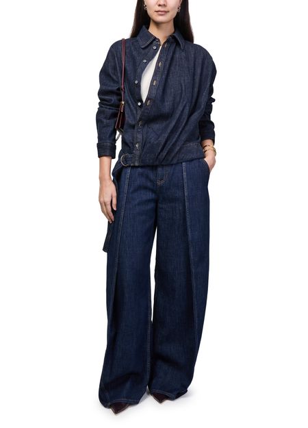 Reveal Loewe's belted jeans, crafted with ankle-length precision and front pleating for a refined silhouette. Topstitched edges and contrast stitching add a modern touch, while two front pockets and belt loops ensure both style and practicality. Perfect for elevating everyday ensembles with effortless sophistication.
