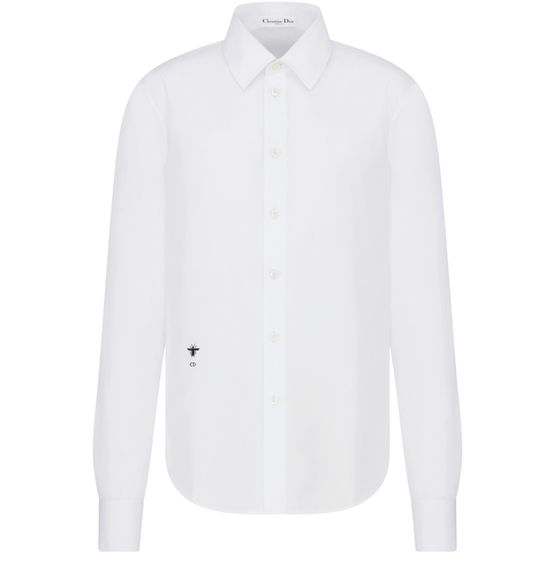 Unveil Dior's blouse with its exquisite embroidered hallmark bee and CD signature. The blouse features a sophisticated front button closure adorned with Christian Dior Paris signature mother-of-pearl buttons. French cuffs and an unlined finish complete this elegant piece.