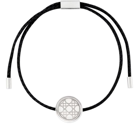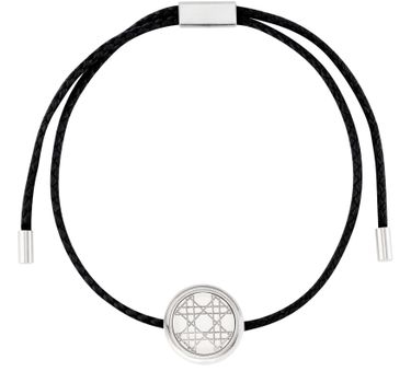 Reveal Dior's Cannage Bracelet, a craftsmanship marvel featuring a double-sided piece engraved with the iconic Dior signature. This exquisite piece, made from 80% brass and 20% lambskin, boasts a sliding knot closure for a refined touch. Crafted in Germany, it embodies elegance and sophistication.