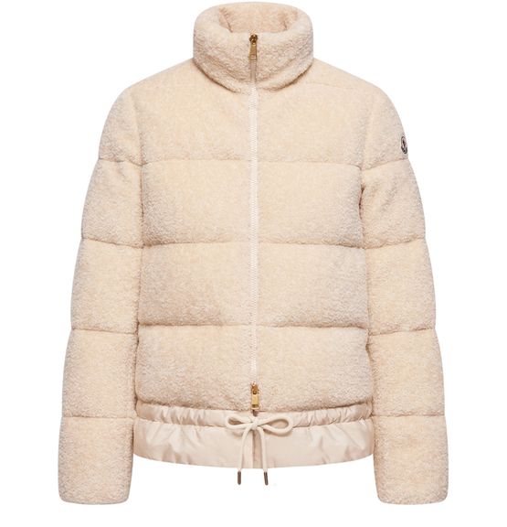 Reveal Moncler's short puffer coat, crafted from warm fabric with a padded texture for a modern silhouette. The long sleeves, collar, and zipper closure offer both comfort and style, while side pockets and an embroidered logo add refined, functional touches for versatile everyday wear.
