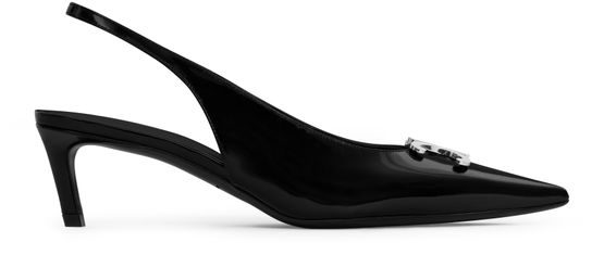 Celine's Alma Triomphe slingback in glossy calfskin embodies elegance and style. With a slightly inclined heel and a pointy toe shape, it features a striking large metal Triomphe on the toe. The elastic back strap ensures a perfect fit, while the leather insole and outsole offer comfort. Made in Italy, this model fits true to size, making it a must-have for any wardrobe.