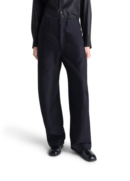 Discover Lemaire's casual pant, crafted with front pleating and a concealed closure for a refined silhouette. Side pockets and visible stitching add functional flair, while belt loops ensure versatility. This piece blends comfort and sophistication, making it a seamless addition to any modern wardrobe.