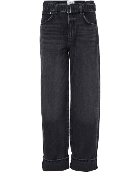 Introducing Agolde's cuffed taper jeans, crafted from faded denim for a modern edge. These high-waisted jeans feature a buttoned zipper closure, ankle length, and visible stitching. With two front pockets and a back patch pocket, they offer both style and functionality, perfect for any wardrobe.