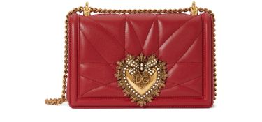As stunning as a jewellery box, the Devotion shoulder bag features an elegant design with a glittering heart. The combination of materials and details are artfully highlighted by Dolce and Gabbana.