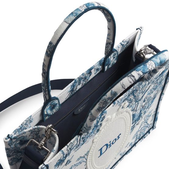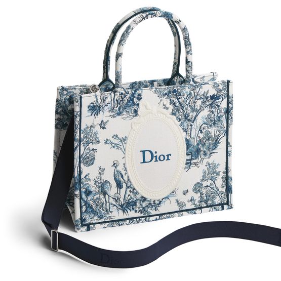 Celebrate Dior's Medium Dior Book Tote with Strap, a remarkable fusion of elegance and functionality. Featuring the iconic Dior Médaillon signature on the front, this tote boasts top handles and an adjustable, removable Dior signature shoulder strap. Inside, find a practical interior zip pocket and two slip pockets for effortless organization.