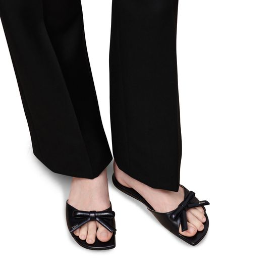 Unveil Dior's Bow Slide, featuring a captivating gold-tone Dior signature adorning the bow. The insole is elegantly finished with the iconic Dior Médaillon signature, ensuring a sophisticated touch with every step.