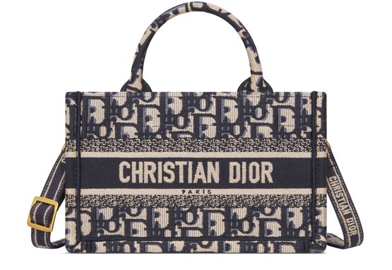 Unveil Dior's Mini Book Tote. This compact yet spacious tote is crafted with exquisite details, offering a perfect blend of elegance and functionality. Its sleek design is ideal for both casual outings and refined occasions, making it a must-have accessory in any modern wardrobe.
