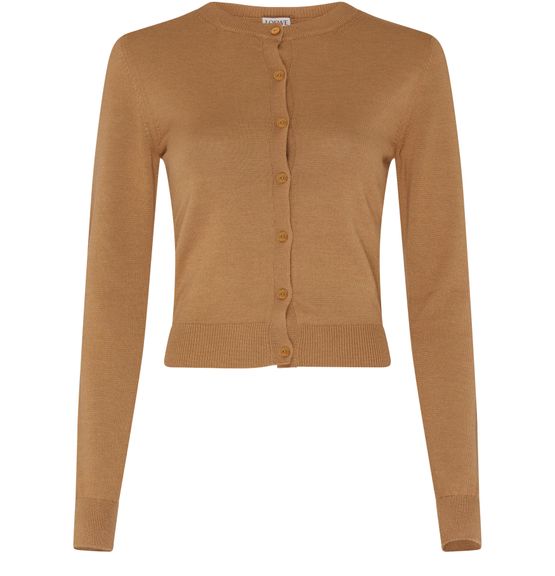 Loewe's Draped cashmere and silk cardigan combines luxury and comfort with its front buttoned closure and regular length. Long-sleeved with cuffed sleeves, it offers a relaxed fit, while the crew neck adds sophistication. An appliquéd logo subtly showcases the brand's elegance, making it a perfect layering piece for any occasion.
