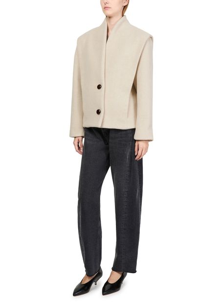 Elevate Isabel Marant's Dyogo jacket with its boxy fit and collarless design, offering a fresh take on classic style. This long-sleeved piece features a two-button closure that enhances its clean silhouette. Perfect for versatile wear, this coat seamlessly transitions from casual outings to sophisticated gatherings.