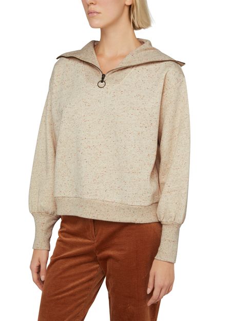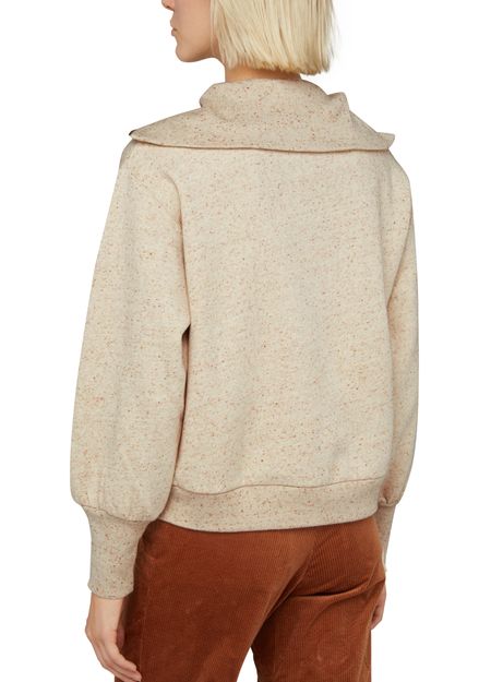 Sessùn's Ellow sweatshirt showcases long puffed sleeves and a loose fit, offering effortless style. Its mockneck adds a touch of sophistication, while the all-over pattern brings a playful vibe. With a convenient zipper fastening, this sweatshirt effortlessly combines comfort and chic, making it a perfect choice for any casual outing.