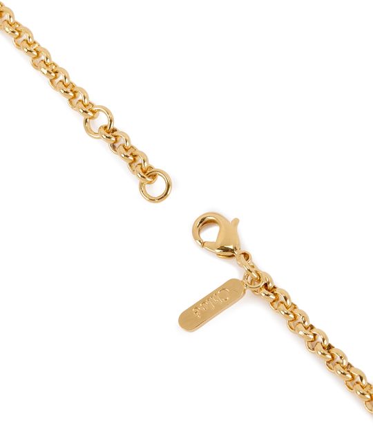 Designed like a medallion, and hanging from a golden chain, the Emoji necklace created by Chloé is a circular piece marked by a female torso surrounded by stars.